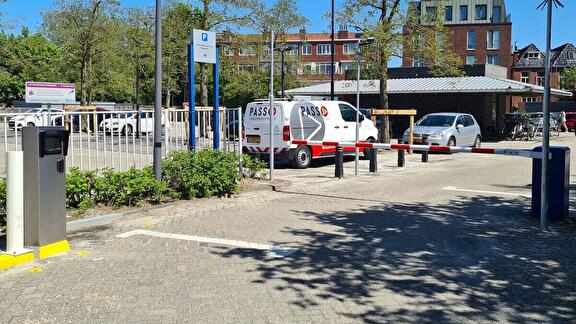 Overdag parkeer je eenvoudig op het parkeerterrein bij het winkelcentrum. In de avond en nacht is het terrein afgesloten: de slagboom sluit…
